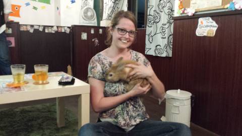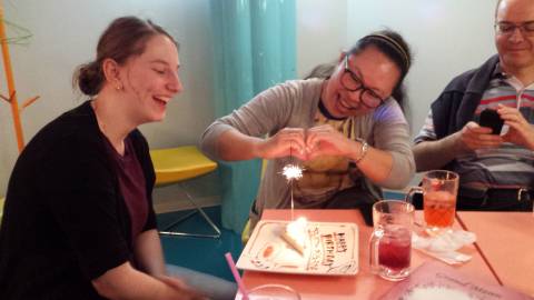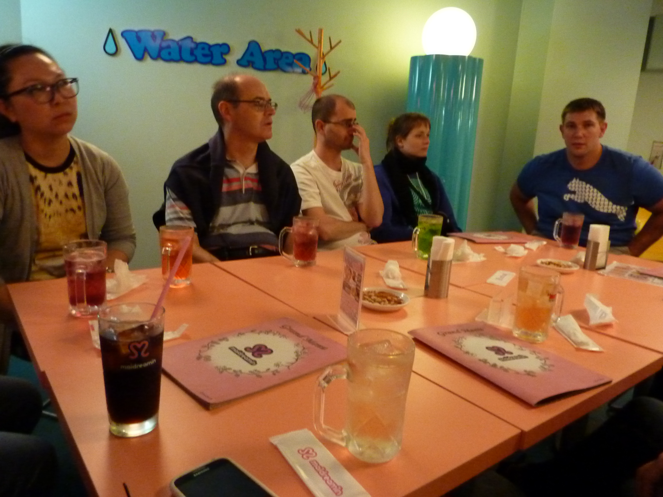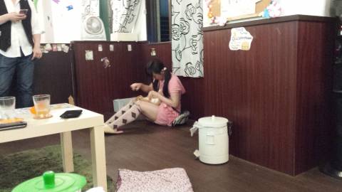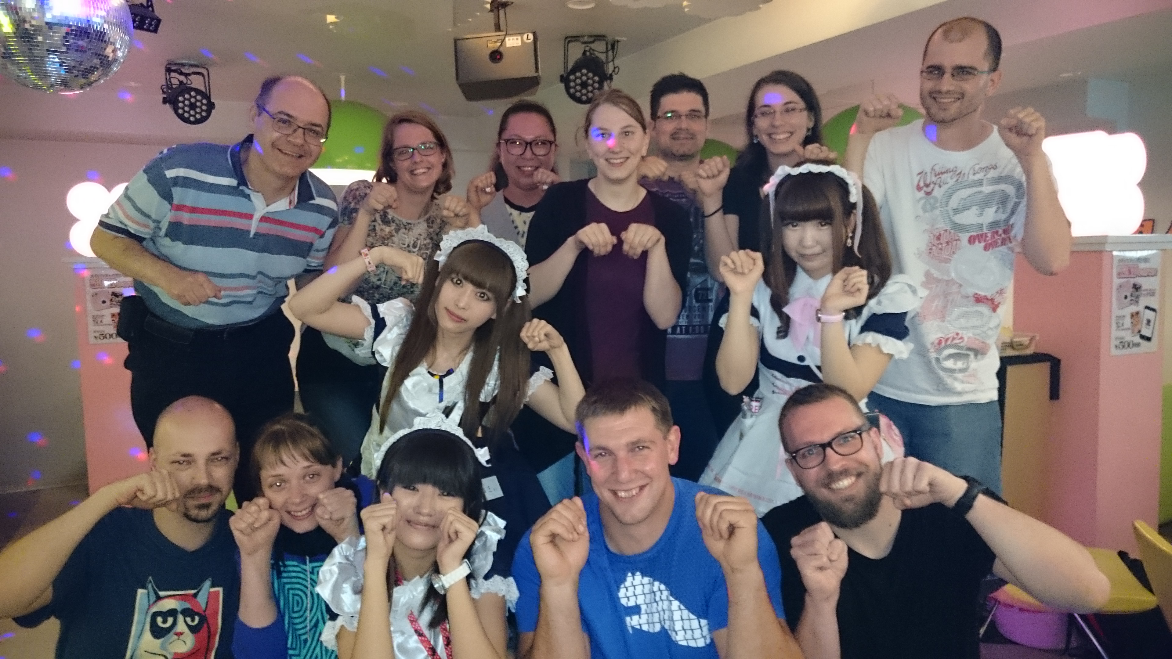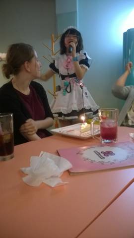 L'anniversaire d'Anne-Sophie dans un Maid-Café, avec les petites japonaises déguisées et leur voix exagérément aiguë.